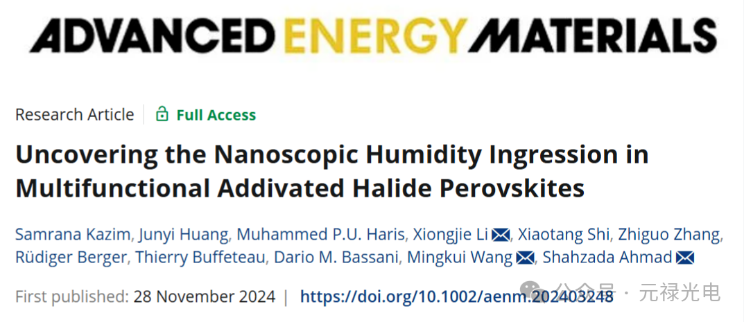 華科王鳴魁&李雄杰AEM:25.14% 1000h近0衰減 納米級濕度侵入鈣鈦礦探究